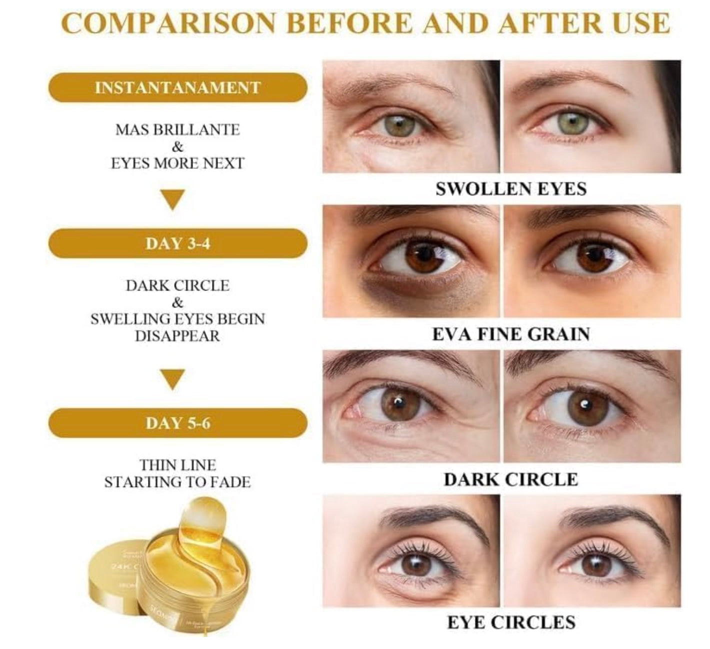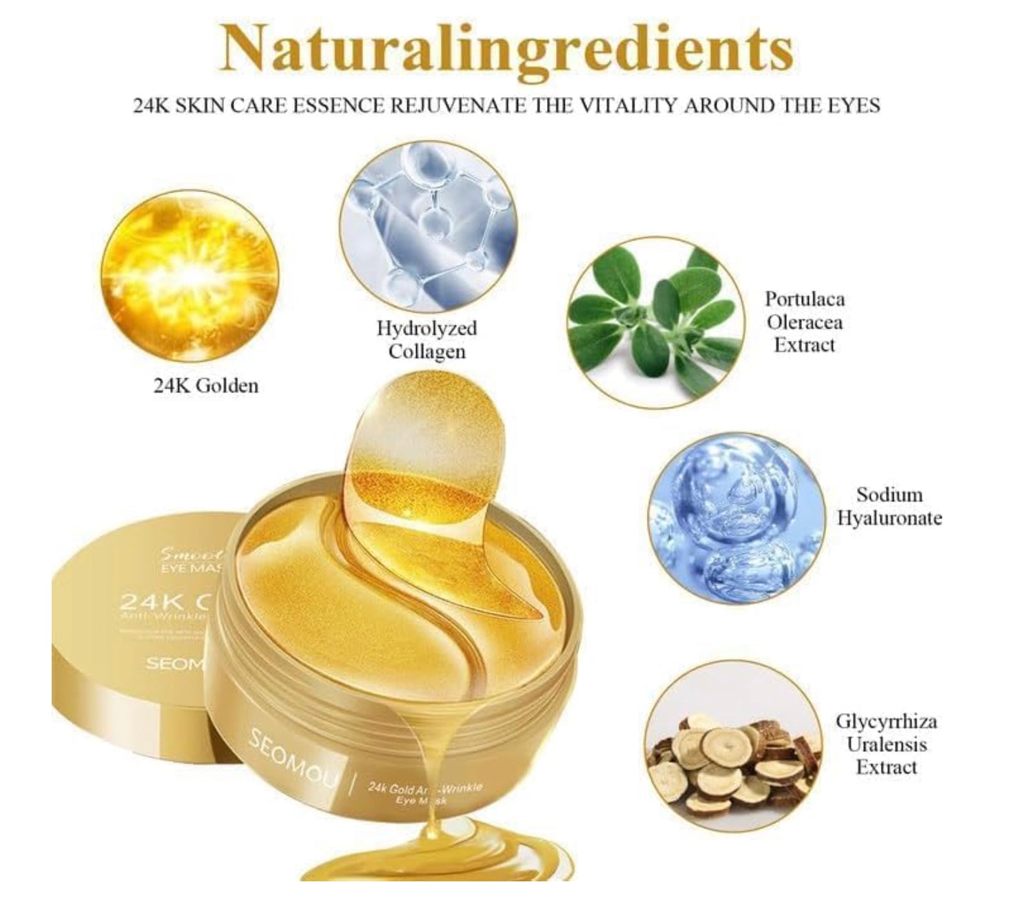 Transform your tired eyes into radiant, youthful, and refreshed ones with the 24K Gold Anti-Wrinkle Eye Mask. Infused with real 24K gold particles, collagen, and natural plant extracts, these premium hydrogel patches are designed to erase dark circles, reduce puffiness, and smooth wrinkles, giving your under-eye area a healthy, glowing look.